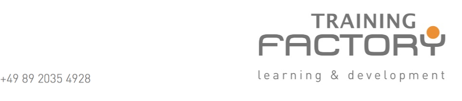 ![]() Privacy Policy TRAINING FACTORY nimmt den Schutz personenbezogener Daten sehr ernst. Wir möchten, dass Sie wissen, wann wir welche Daten speichern und wie wir sie verwenden. Als privatrechtliches Unternehmen unterliegen wir den Bestimmungen des Bundesdatenschutzgesetzes (BDSG) und des Telemediengesetzes (TMG). Personenbezogene Daten Personenbezogene Daten sind Informationen, die dazu genutzt werden können, Ihre Identität zu erfahren. Darunter fallen Informationen wie Ihr richtiger Name, Adresse, Postanschrift, Telefonnummer. Informationen, die nicht direkt mit Ihrer wirklichen Identität in Verbindung gebracht werden (wie zum Beispiel favorisierte Webseiten oder Anzahl der Nutzer einer Site) fallen nicht darunter. Sie können unser Online-Angebot grundsätzlich ohne Offenlegung Ihrer Identität nutzen. Wenn Sie über diese Website bzw. per e-Mail mit uns in Kontakt treten, unterliegt es Ihrer freien Entscheidung, ob und welche persönlichen Daten Sie uns mitteilen. Ihre Angaben speichern wir auf besonders geschützten Servern in Deutschland. Der Zugriff darauf ist nur wenigen besonders befugten Personen möglich, die mit der technischen, kaufmännischen oder redaktionellen Betreuung der Server befasst sind. Die Speicherung Ihrer Daten erfolgt lediglich so lange, wie eine geschäftliche Beziehung besteht. Anderenfalls werden Ihre Daten nach 30 Tagen gelöscht. Sollten sich in unseren Film- und Bildbeispielen (Referenzen) auf unseren Websites erkennbare Personen wiederfinden, so lagen uns oder unseren jeweiligen Auftraggebern zum Zeitpunkt der Erstellung der Bilder oder der Filme die Einverständniserklärungen bzw. Einwilligungen zur entsprechenden Veröffentlichung vor. Speicherung von IP-Adressen In Verbindung mit Ihrem Zugriff werden auf unseren Servern Daten gespeichert, die möglicherweise eine Identifizierung zulassen (zum Beispiel IP-Adresse, Datum, Uhrzeit und betrachtete Seiten). Hierauf haben wir rein technisch keinerlei Einfluß, da dies durch unseren Host stattfindet. Es findet weder eine personenbezogene Verwertung noch eine statistische Auswertung durch uns statt. Auch unser Host (Serverbetreiber) ist an das BDSG gebunden. Weitergabe personenbezogener Informationen an Dritte Wir verwenden Ihre personenbezogenen Informationen im Falle einer geschäftlichen Beziehung, bei Einholung von Angeboten, Bestellungen von Waren und Dienstleistungen o. ä. Wir geben ohne Ihr ausdrückliches Einverständnis grundsätzlich keine personenbezogenen Daten an Dritte weiter. Sollten im Rahmen der Auftragsdatenverarbeitung Daten an Dienstleister weitergegeben werden, so sind diese an das BDSG, andere gesetzliche Vorschriften und vertraglich an diese Privacy Policy von TRAINING FACTORY gebunden. Soweit wir gesetzlich oder per Gerichtsbeschluss dazu verpflichtet sind, werden wir Ihre Daten an auskunftsberechtigte Stellen übermitteln. Recht auf Widerruf und Korrektur Wenn Sie uns personenbezogene Daten überlassen haben, können Sie diese jederzeit wieder löschen, soweit wir nicht durch gesetzliche Aufbewahrungspflichten, etwa zu steuerlichen oder buchhalterischen Zwecken, gehalten sind, diese Daten für einen bestimmten Zeitraum zu speichern. In diesem Fall werden wir die Daten unverzüglich nach Ablauf der Speicherfrist löschen. Weiterhin können Sie falsche erfasste Daten selbstverständlich jederzeit korrigieren lassen. Ihr Recht auf Widerruf und Korrektur können Sie gegenüber folgender Anschrift geltend machen: TRAINING FACTORY Ammerlander Hauptraße 1 82541 Münsing mail@training-factory.de Cookies, Tracking und externe Dienstleister Wir verwenden auf unseren eignen Websites weder Cookies noch führen wir ein Tracking durch. Möglicherweise verwenden Websites von Drittanbietern oder externen Dienstleistern, zu denen wir verlinken (zum Beispiel YouTube, Facebook etc.) Cookies, ohne dass wir Sie darauf hinweisen können oder Einfluß darauf haben. Die meisten Browser sind so eingestellt, dass sie Cookies automatisch akzeptieren. Sie können das Speichern von Cookies jedoch deaktivieren oder Ihren Browser so einstellen, dass er Sie benachrichtigt, sobald Cookies gesendet werden. Weitere Informationen zur werblichen Nutzung von Cookies finden Sie unter http://www.meine-cookies.org/. Kinder Personen unter 18 Jahren sollten ohne Zustimmung der Eltern oder Erziehungsberechtigten keine personenbezogenen Daten an uns übermitteln. Links zu anderen Websites Unser Online-Angebot enthält Links zu anderen Websites. Wir haben keinen Einfluss darauf, dass deren Betreiber die Datenschutzbestimmungen einhalten. Fragen und Kommentare Für Fragen, Anregungen oder Kommentare zum Thema Datenschutz wenden Sie sich bitte per E-Mail an den Datenschutzbeauftragten von TRAINING FACTORY: mail@training-factory.de. Münsing, 10.03.2020 Haftungsausschluß Haftung für Inhalte Als Diensteanbieter sind wir gemäß § 7 Abs.1 TMG für eigene Inhalte auf diesen Seiten nach den allgemeinen Gesetzen verantwortlich. Nach §§ 8 bis 10 TMG sind wir als Diensteanbieter jedoch nicht verpflichtet, übermittelte oder gespeicherte fremde Informationen zu überwachen oder nach Umständen zu forschen, die auf eine rechtswidrige Tätigkeit hinweisen. Verpflichtungen zur Entfernung oder Sperrung der Nutzung von Informationen nach den allgemeinen Gesetzen bleiben hiervon unberührt. Eine diesbezügliche Haftung ist jedoch erst ab dem Zeitpunkt der Kenntnis einer konkreten Rechtsverletzung möglich. Bei Bekanntwerden von entsprechenden Rechtsverletzungen werden wir diese Inhalte umgehend entfernen. Haftung für Links Unser Angebot enthält Links zu externen Webseiten Dritter, auf deren Inhalte wir keinen Einfluss haben. Deshalb können wir für diese fremden Inhalte auch keine Gewähr übernehmen. Für die Inhalte der verlinkten Seiten ist stets der jeweilige Anbieter oder Betreiber der Seiten verantwortlich. Die verlinkten Seiten wurden zum Zeitpunkt der Verlinkung auf mögliche Rechtsverstöße überprüft. Rechtswidrige I